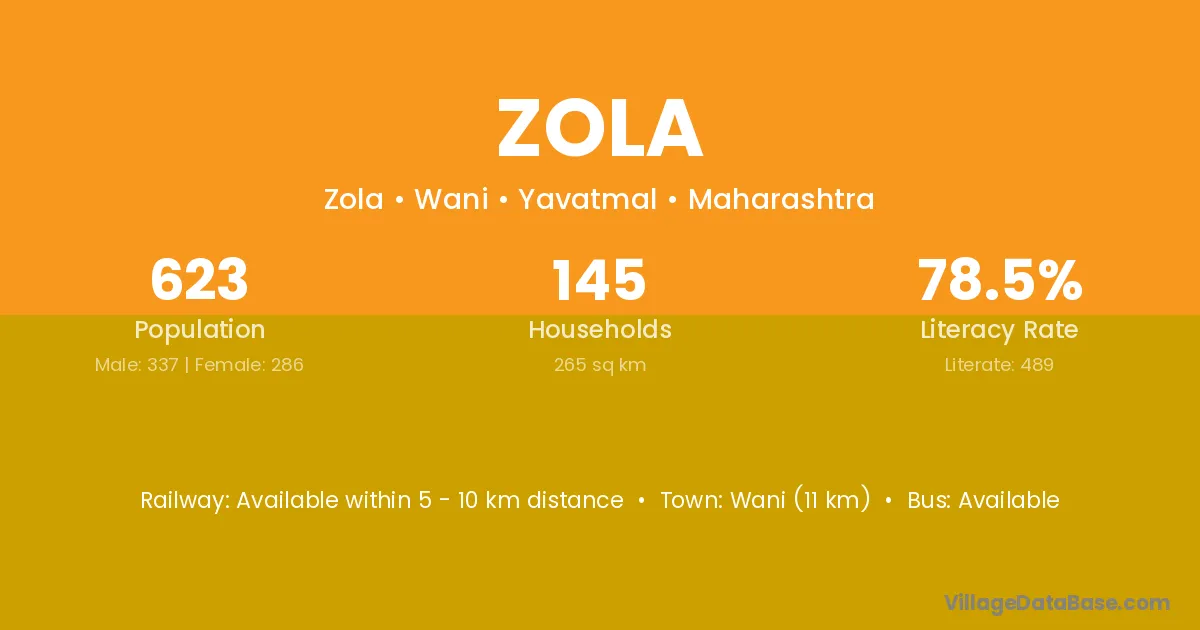 Yavatmal (19 km) is the nearest town to Zola village for major economic activities and is located approximately 19 km away.