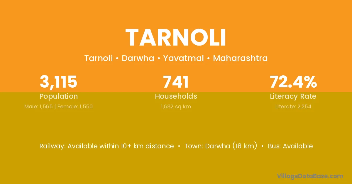 Darwha (18 km) is the nearest town to Tarnoli village for major economic activities and is located approximately 18 km away.