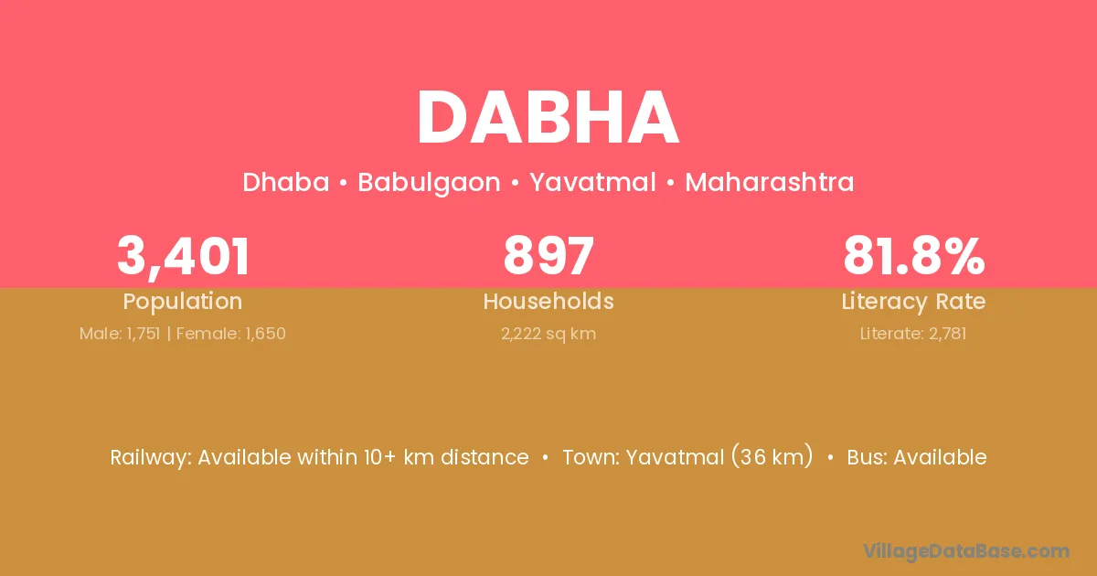 Digras (30 km) is the nearest town to Dabha village for major economic activities and is located approximately 30 km away.