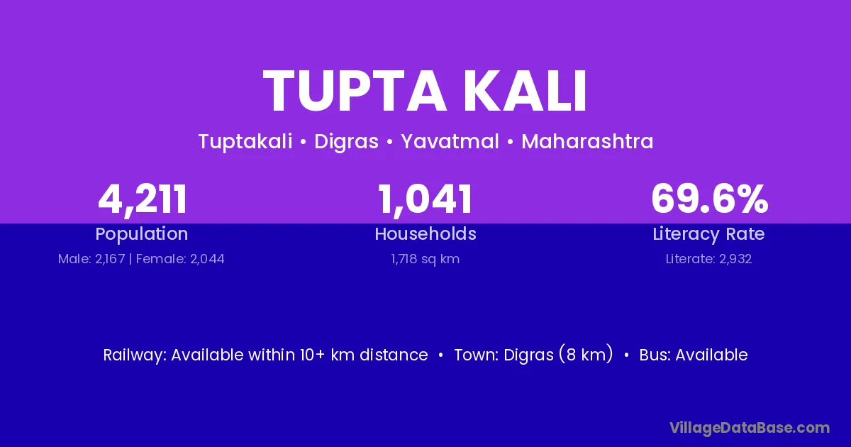 Digras (8 km) is the nearest town to Tupta Kali village for major economic activities and is located approximately 8 km away.