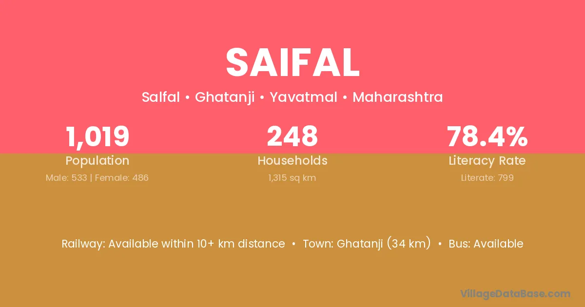 Ghatanji (34 km) is the nearest town to Saifal village for major economic activities and is located approximately 34 km away.