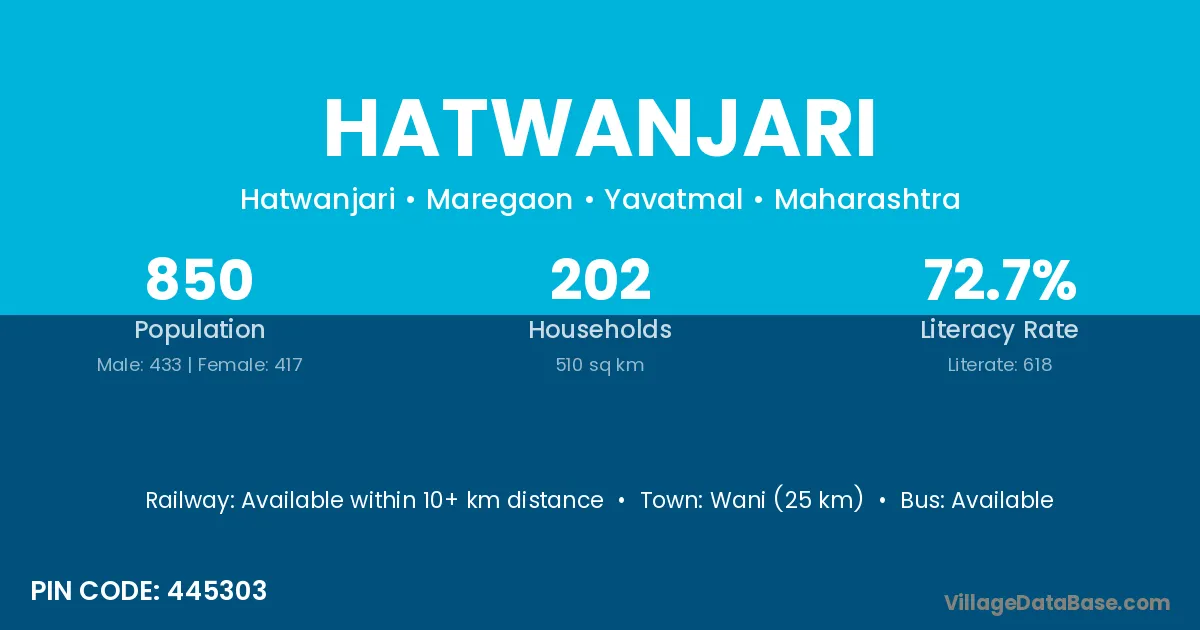 Wani (25 km) is the nearest town to Hatwanjari village for major economic activities and is located approximately 25 km away.