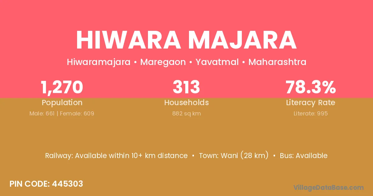 Wani (28 km) is the nearest town to Hiwara Majara village for major economic activities and is located approximately 28 km away.