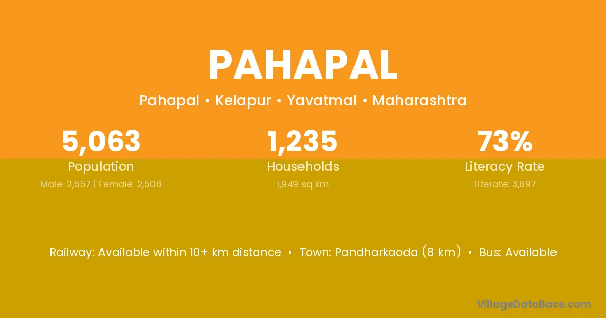 Wani (21 km) is the nearest town to Pahapal village for major economic activities and is located approximately 21 km away.