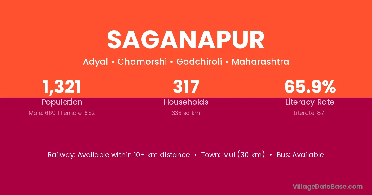Wani (26 km) is the nearest town to Saganapur village for major economic activities and is located approximately 26 km away.