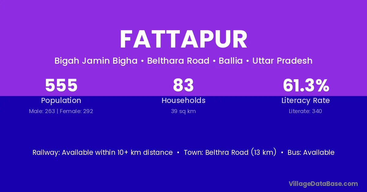 Fattapur village has a total population of 536 people, of which 271 are males and 265 are females.