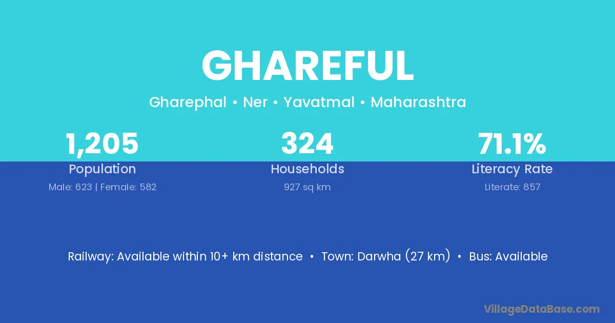 Darwha (27 km) is the nearest town to Ghareful village for major economic activities and is located approximately 27 km away.