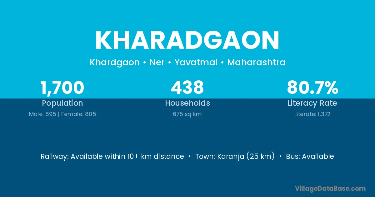 Karanja (25 km) is the nearest town to Kharadgaon village for major economic activities and is located approximately 25 km away.