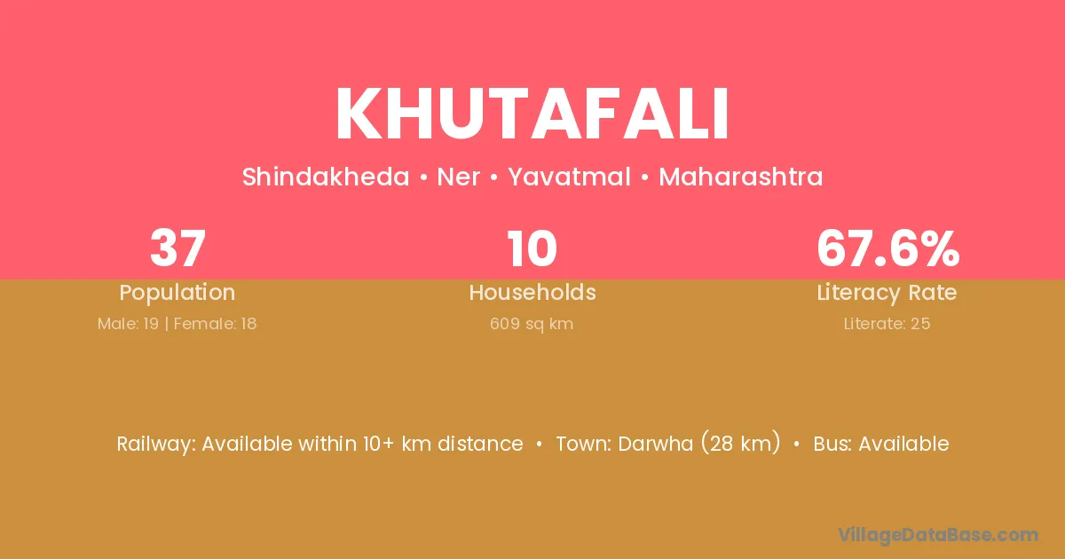 Darwha (28 km) is the nearest town to Khutafali village for major economic activities and is located approximately 28 km away.