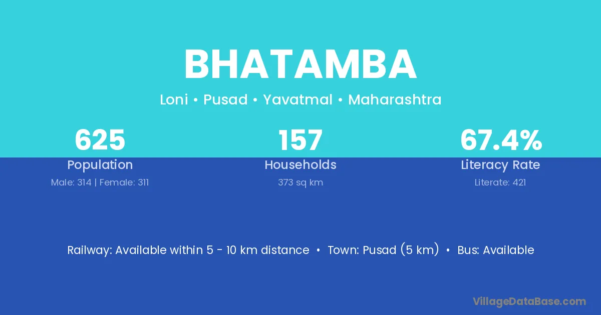Pusad (5 km) is the nearest town to Bhatamba village for major economic activities and is located approximately 5 km away.