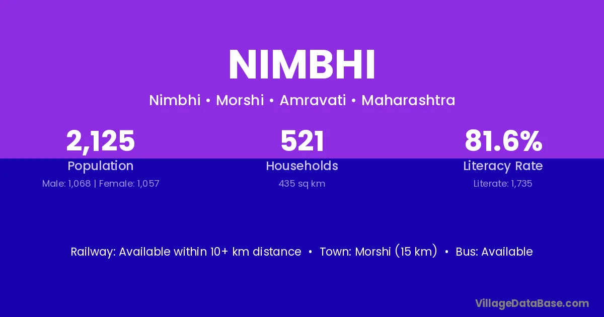 Pusad (5 km) is the nearest town to Nimbhi village for major economic activities and is located approximately 5 km away.