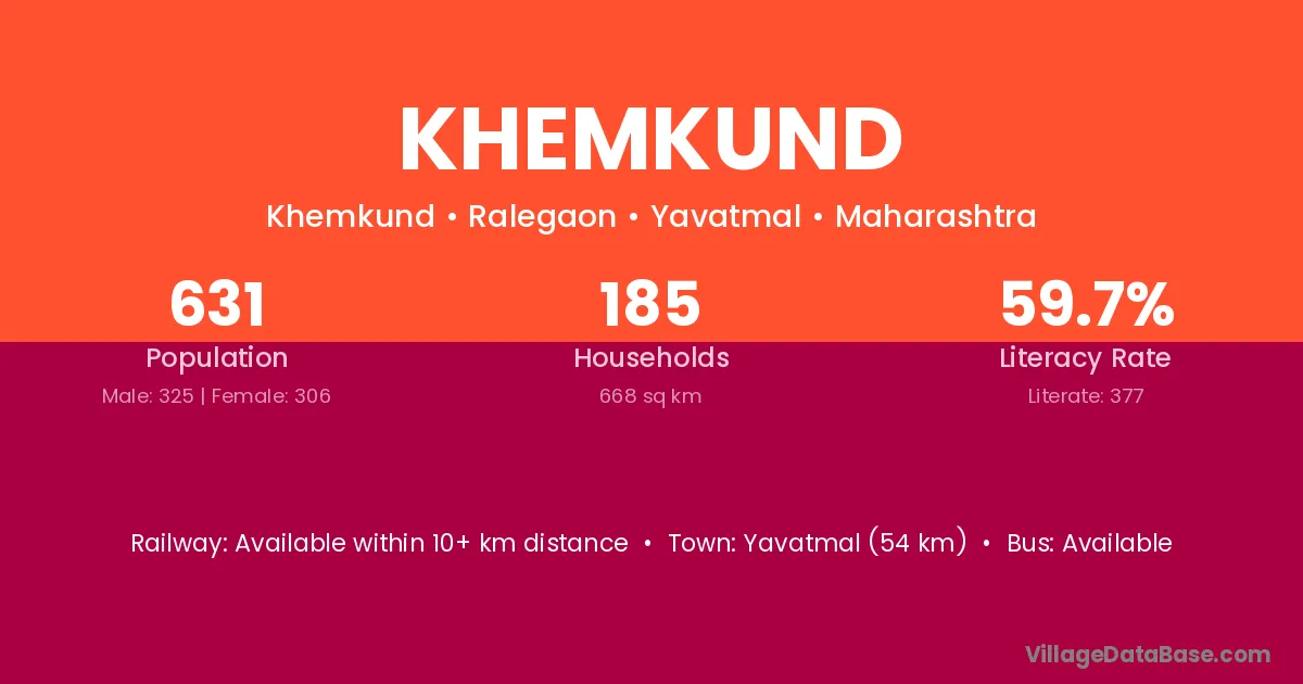 Yavatmal (54 km) is the nearest town to Khemkund village for major economic activities and is located approximately 54 km away.
