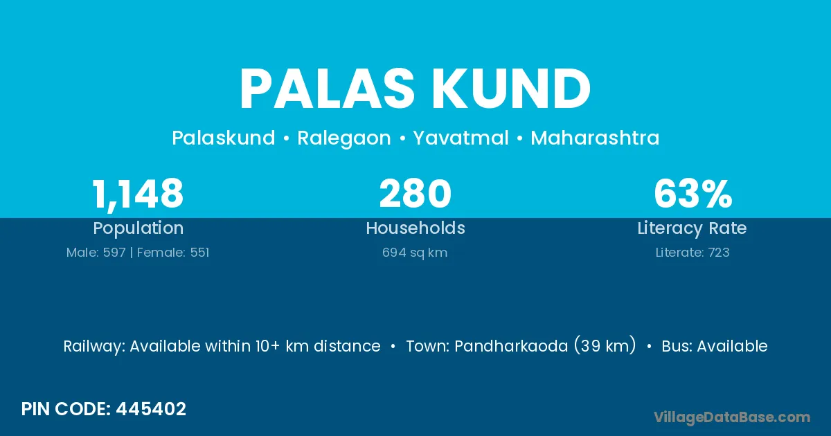 Pandharkaoda (39 km) is the nearest town to Palas Kund village for major economic activities and is located approximately 39 km away.