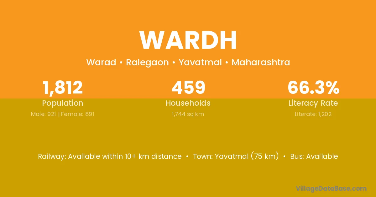 Yavatmal (75 km) is the nearest town to Wardh village for major economic activities and is located approximately 75 km away.
