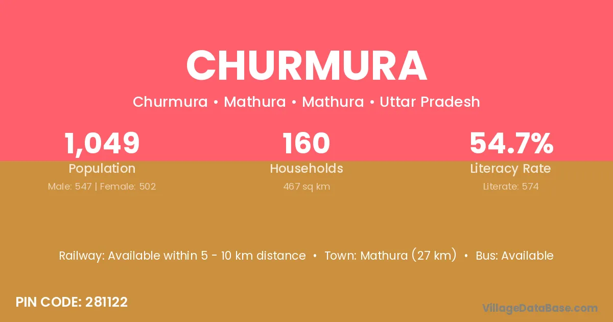 Umarkhed (6 km) is the nearest town to Churmura village for major economic activities and is located approximately 6 km away.