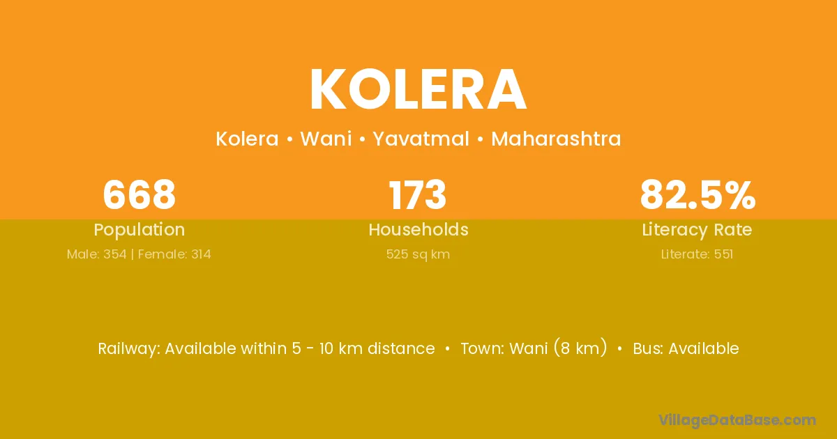 Wani (8 km) is the nearest town to Kolera village for major economic activities and is located approximately 8 km away.