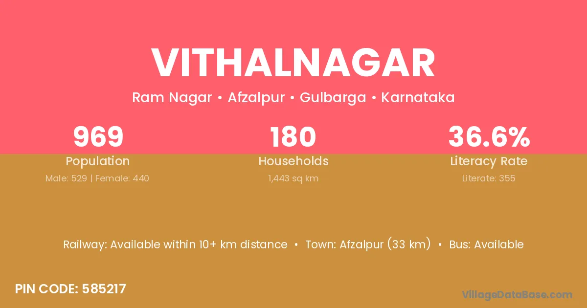 The literacy rate of Vithalnagar village is 71.77%. Male literacy stands at 77.82% and female literacy at 65.33%.