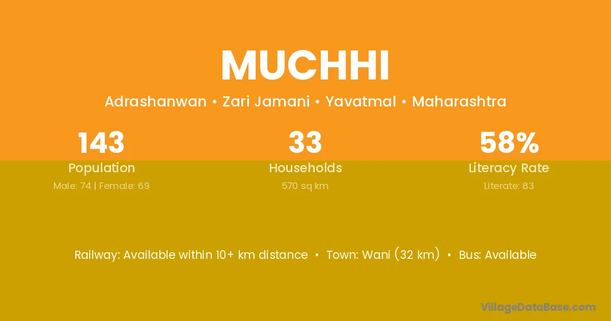 Wani (32 km) is the nearest town to Muchhi village for major economic activities and is located approximately 32 km away.