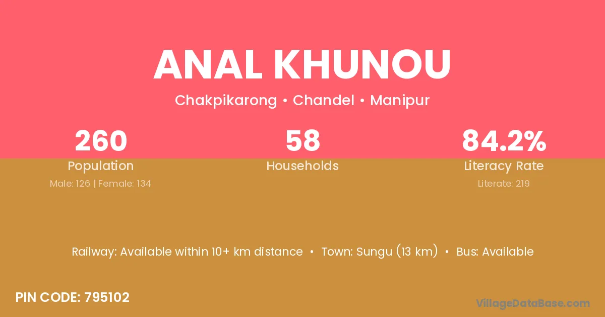 According to Census 2011 information, the village code of Anal Khunou village is 795102.