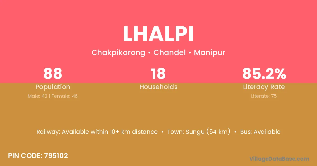 Lhalpi village has a total population of 88 people, of which 42 are males and 46 are females.