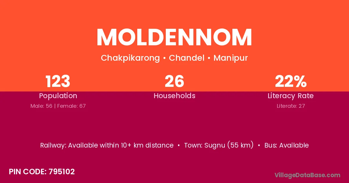 According to Census 2011 information, the village code of Moldennom village is 795102.