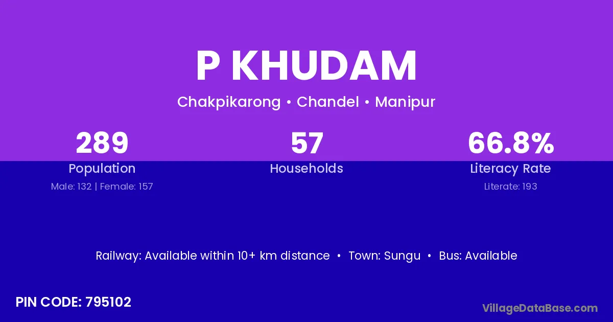 According to Census 2011 information, the village code of P Khudam village is 795102.