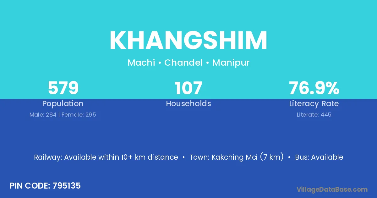 Kakching Mci (7 km) is the nearest town to Khangshim village for major economic activities and is located approximately 7 km away.