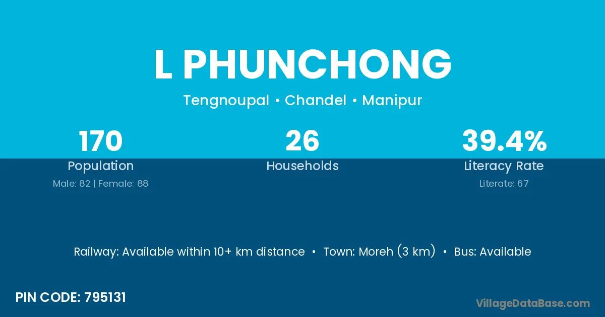 Moreh (3 km) is the nearest town to L Phunchong village for major economic activities and is located approximately 3 km away.
