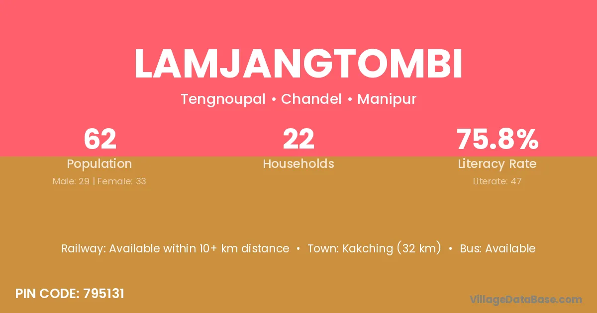 Lamjangtombi village has a total population of 62 people, of which 29 are males and 33 are females.
