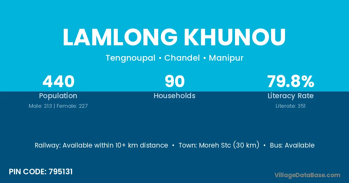 Moreh Stc (30 km) is the nearest town to Lamlong Khunou village for major economic activities and is located approximately 30 km away.
