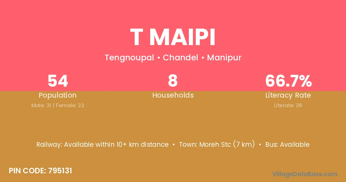 Moreh Stc (7 km) is the nearest town to T Maipi village for major economic activities and is located approximately 7 km away.