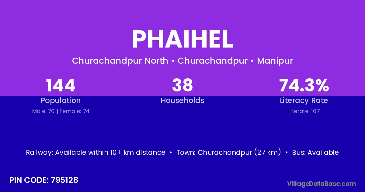 Churachandpur (27 km) is the nearest town to Phaihel village for major economic activities and is located approximately 27 km away.
