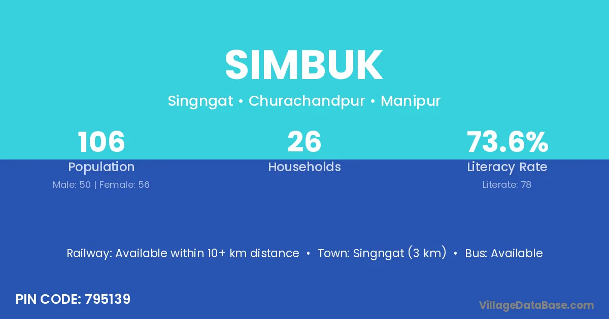 Singngat (3 km) is the nearest town to Simbuk village for major economic activities and is located approximately 3 km away.