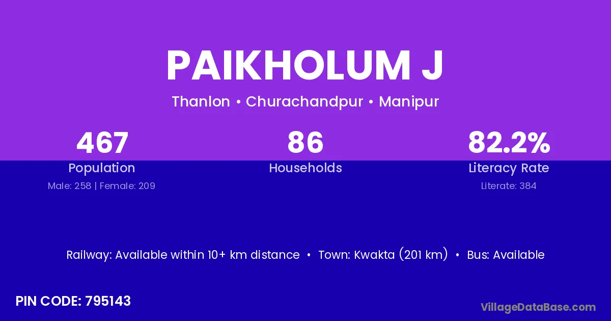 Paikholum J village has a total population of 467 people, of which 258 are males and 209 are females.