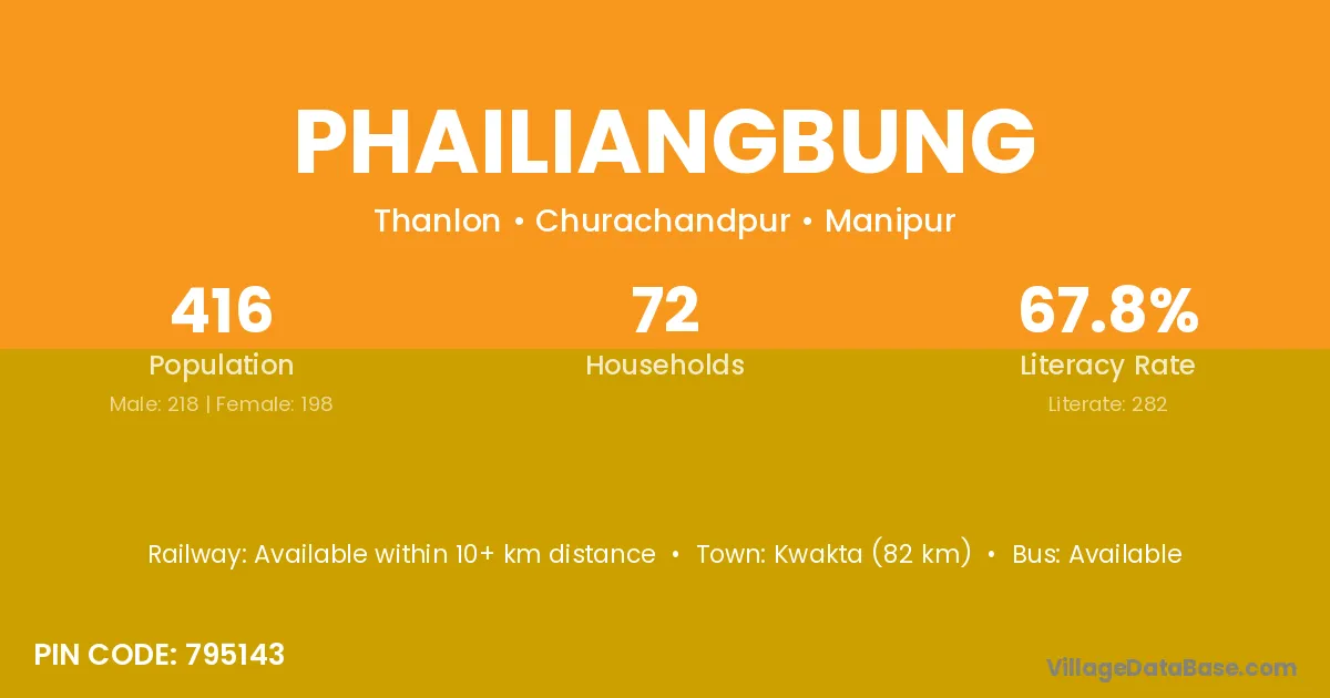 Kwakta (82 km) is the nearest town to Phailiangbung village for major economic activities and is located approximately 82 km away.