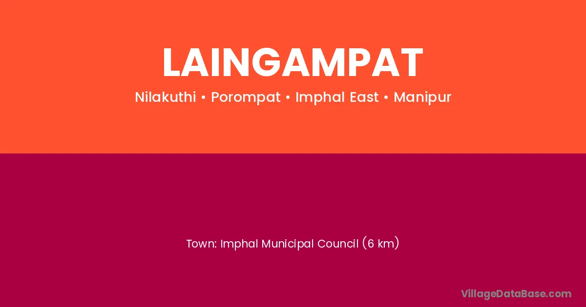 Imphal Municipal Council (6 km) is the nearest town to Laingampat village for major economic activities and is located approximately 6 km away.