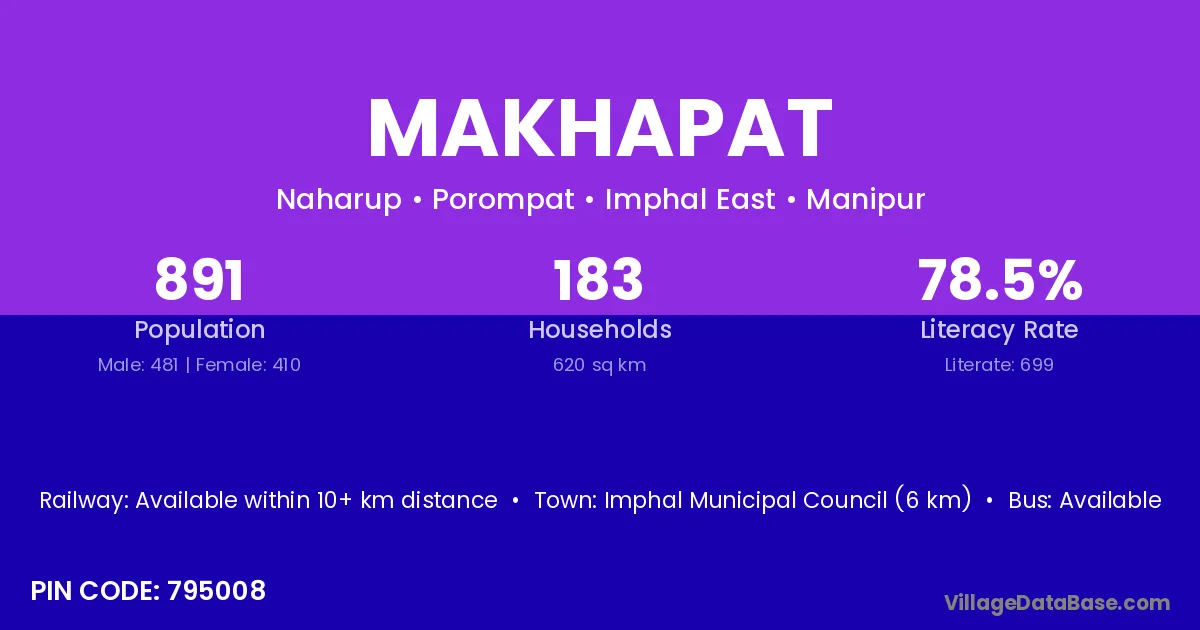 Imphal Municipal Council (6 km) is the nearest town to Makhapat village for major economic activities and is located approximately 6 km away.
