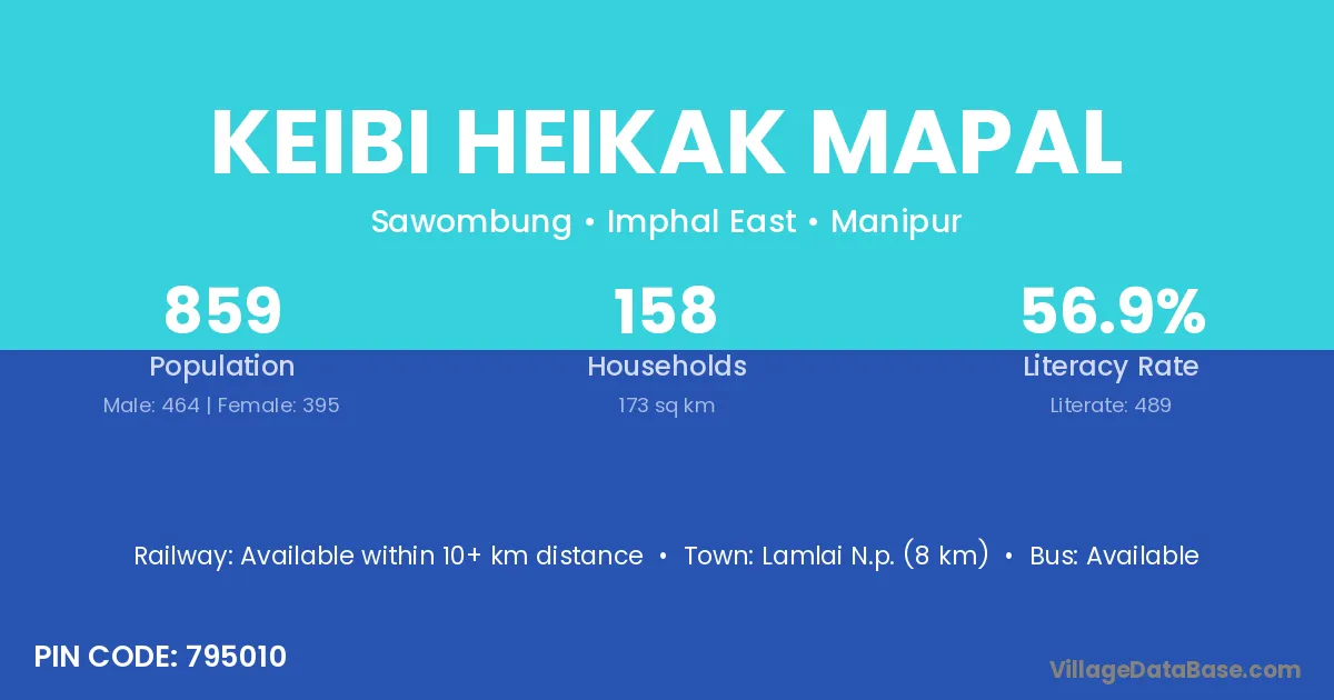 Lamlai N.p. (8 km) is the nearest town to Keibi Heikak Mapal village for major economic activities and is located approximately 8 km away.