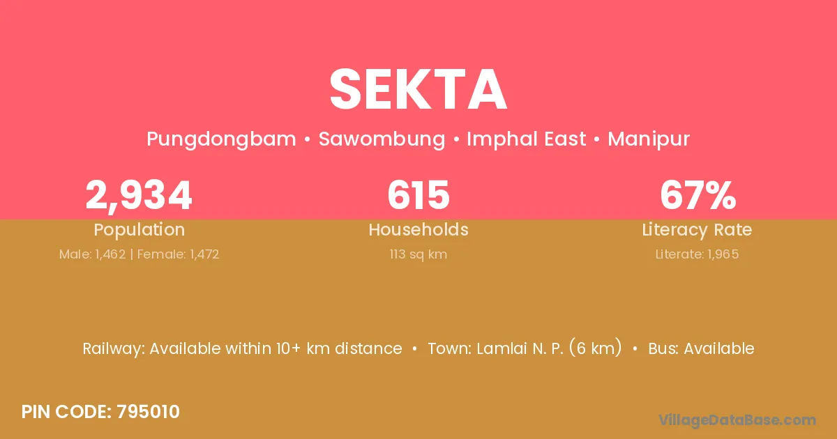 Lamlai N. P. (6 km) is the nearest town to Sekta village for major economic activities and is located approximately 6 km away.