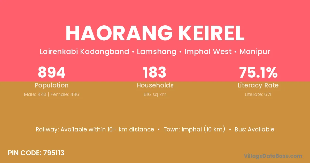Imphal (10 km) is the nearest town to Haorang Keirel village for major economic activities and is located approximately 10 km away.