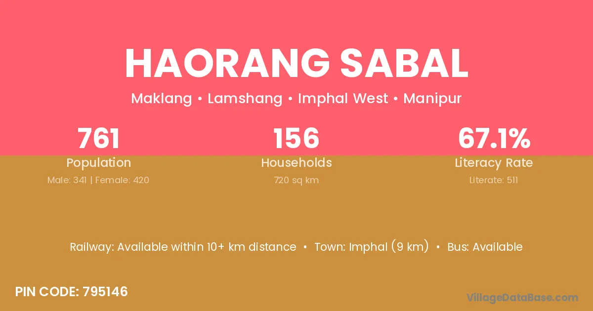 Imphal (9 km) is the nearest town to Haorang Sabal village for major economic activities and is located approximately 9 km away.