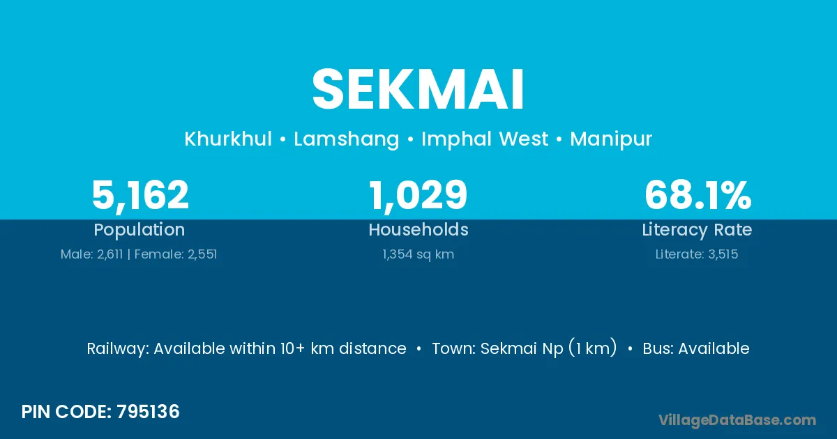 Sekmai Np (1 km) is the nearest town to Sekmai village for major economic activities and is located approximately 1 km away.