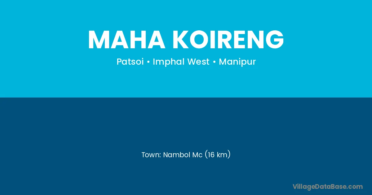 Nambol Mc (16 km) is the nearest town to Maha Koireng village for major economic activities and is located approximately 16 km away.