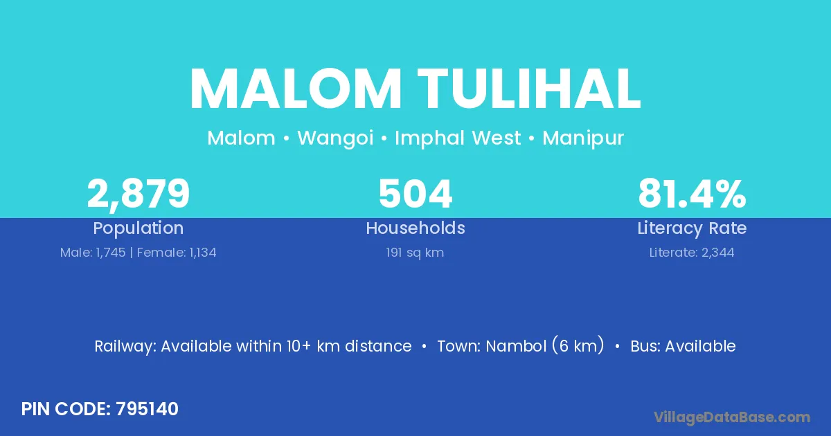 Nambol (6 km) is the nearest town to Malom Tulihal village for major economic activities and is located approximately 6 km away.