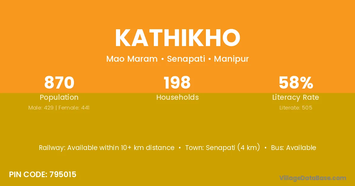 According to Census 2011 information, the village code of Kathikho village is 795015.