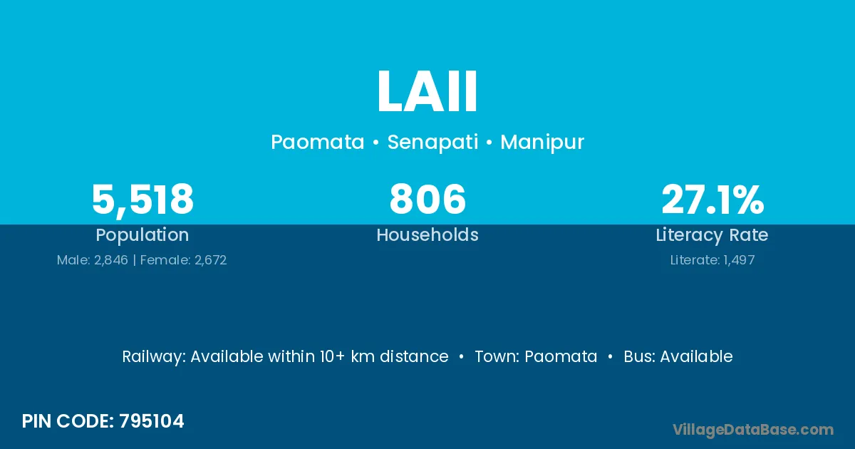 According to Census 2011 information, the village code of Laii village is 795104.