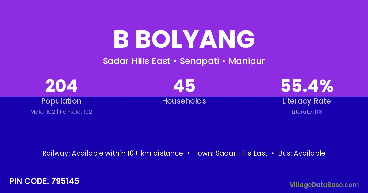 According to Census 2011 information, the village code of B Bolyang village is 795145.