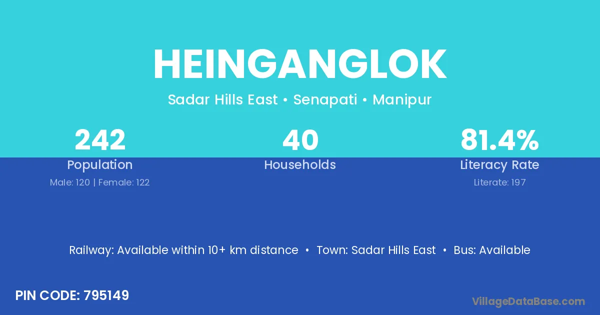 Heinganglok village has a total population of 242 people, of which 120 are males and 122 are females.