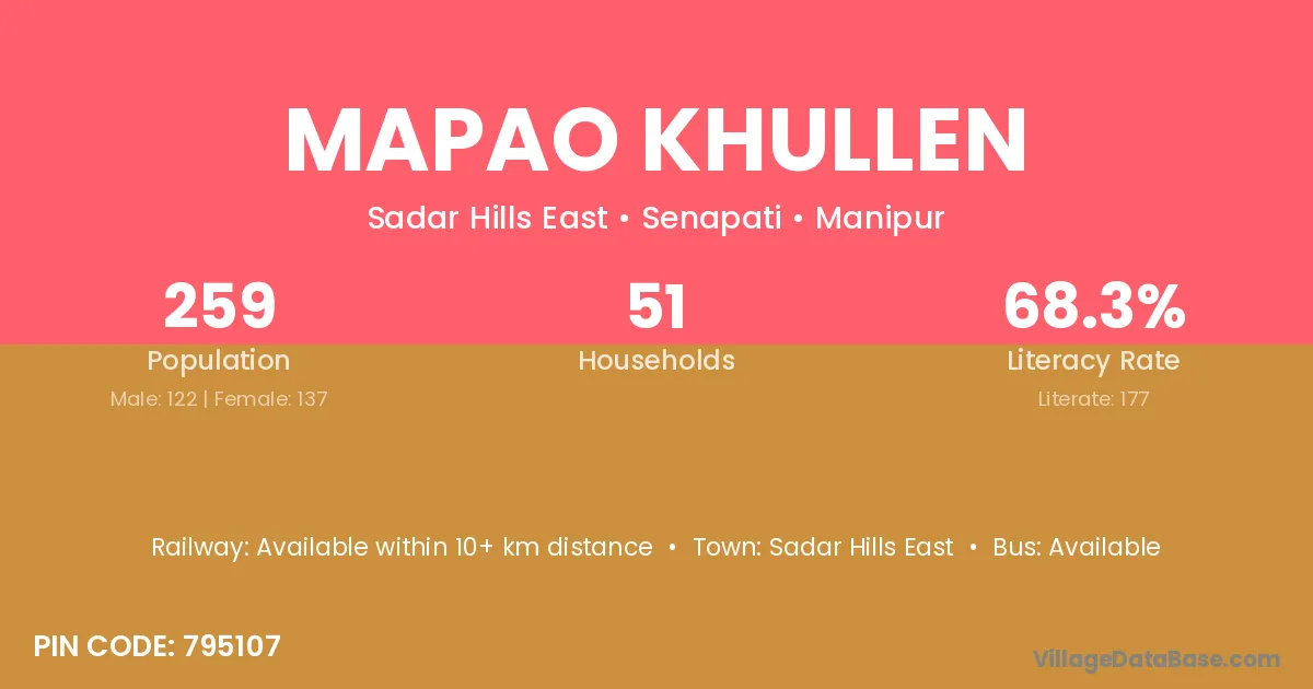 Mapao Khullen village has a total population of 259 people, of which 122 are males and 137 are females.