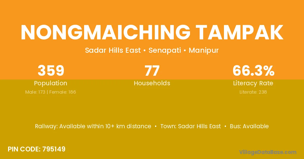 Nongmaiching Tampak village has a total population of 359 people, of which 173 are males and 186 are females.